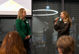 Im Anschluss führten die Produktverantwortlichen Eva Koban-Röß und Doris Carini ein Interview mit Angelika Pretterhofer. Dabei standen sowohl ihr beruflicher Werdegang als auch ihre Rolle als Unternehmerin im Fokus. In der anschließenden Fragerunde nutzten die Studierenden die Gelegenheit, ihre Captain und Auftraggeberin intensiv zu befragen und wertvolle praxisnahe Antworten mitzunehmen.
