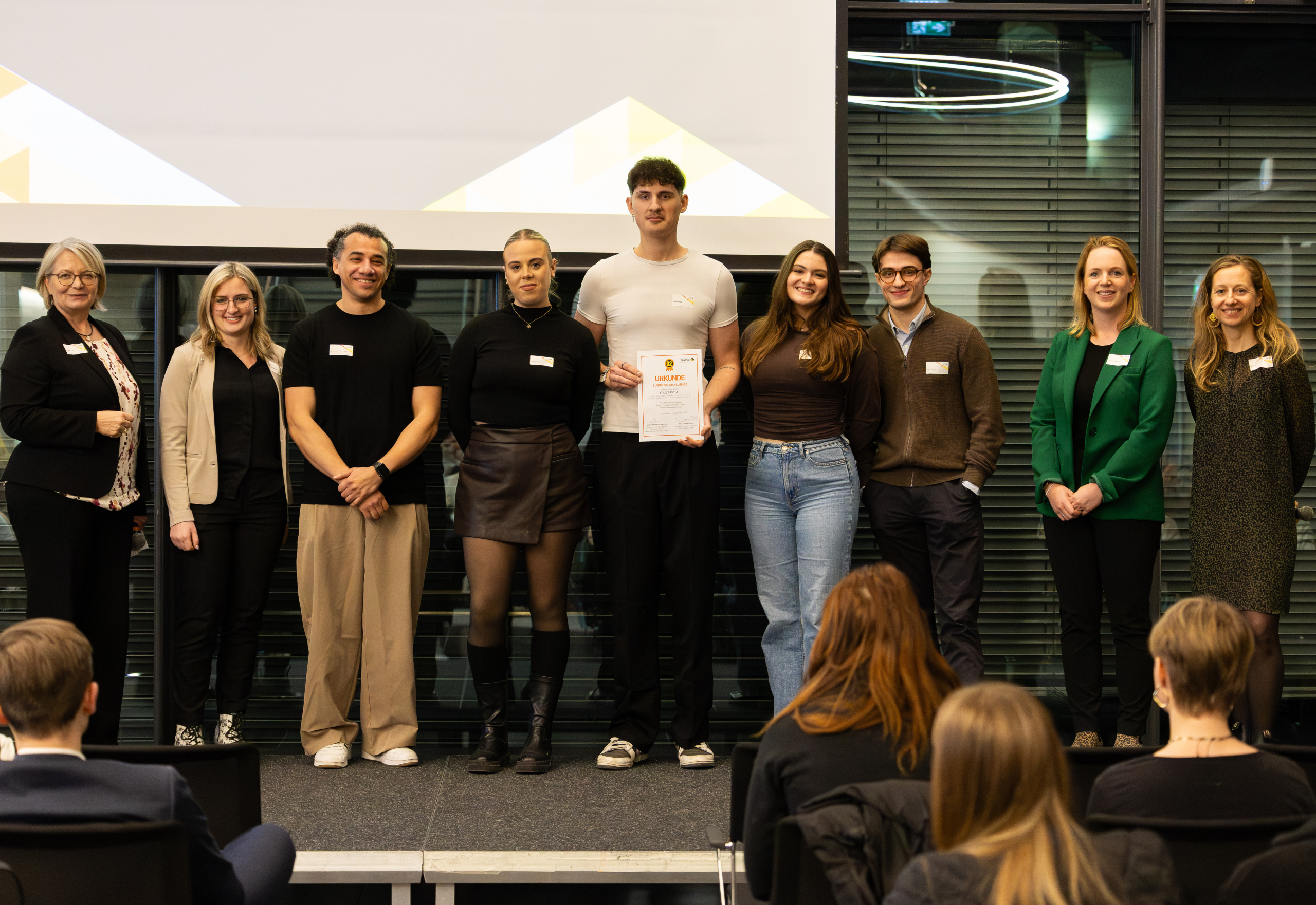 Den Höhepunkt des Abends bildete die Posterpräsentation. Jede Gruppe stellte ihre Ideen vor und erläuterte ihre Konzepte dem Publikum sowie den anderen Teams. Anschließend konnten alle Anwesenden ihre Bewertungen abgeben, bevor die besten Poster feierlich ausgezeichnet wurden.